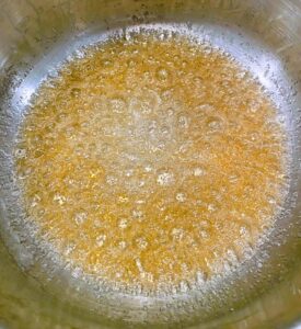 - Sortir du feu, et rajoutez la crème fleurette dans votre caramel ainsi que le beurre et la pincée de fleur de sel