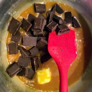 - Rajoutez le chocolat dessert coupé en morceauAstuce : si besoin, repassez à feu doux pour faire fondre le chocolat (mais normalement c'est bon)