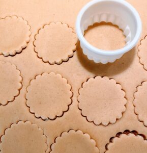 - Prenez l'emporte-pièce de la taille souhaitée (ici environ 5 cm), et découpez votre pâte