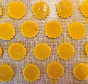 - Battre votre jaune d'œuf et recouvrez vos sablés de jaune d'œuf avec un pinceau