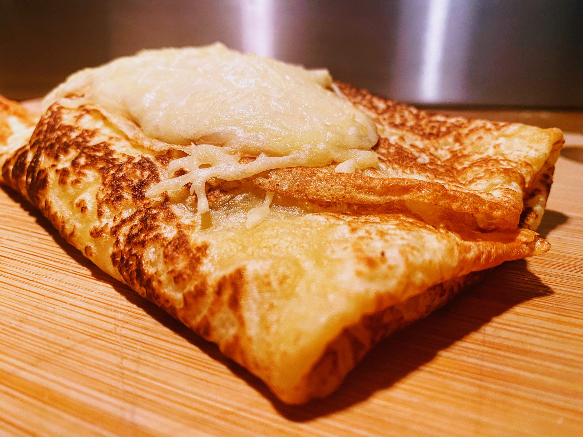 Crêpes salées fourrées au jambon, champignons et à la béchamel