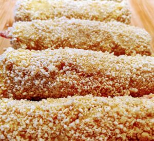 - Trempez vos roulés dans l'œuf battu puis dans la chapelure