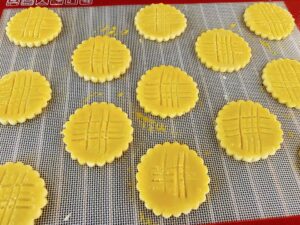 - Cuire pendant 11 minutes à 160°c (une plaque à la fois) jusqu'à ce que vos galettes soient légèrement dorées