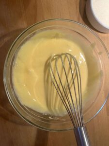 - Dans votre 2ème saladier, rajoutez le sucre vanillé et mélangez