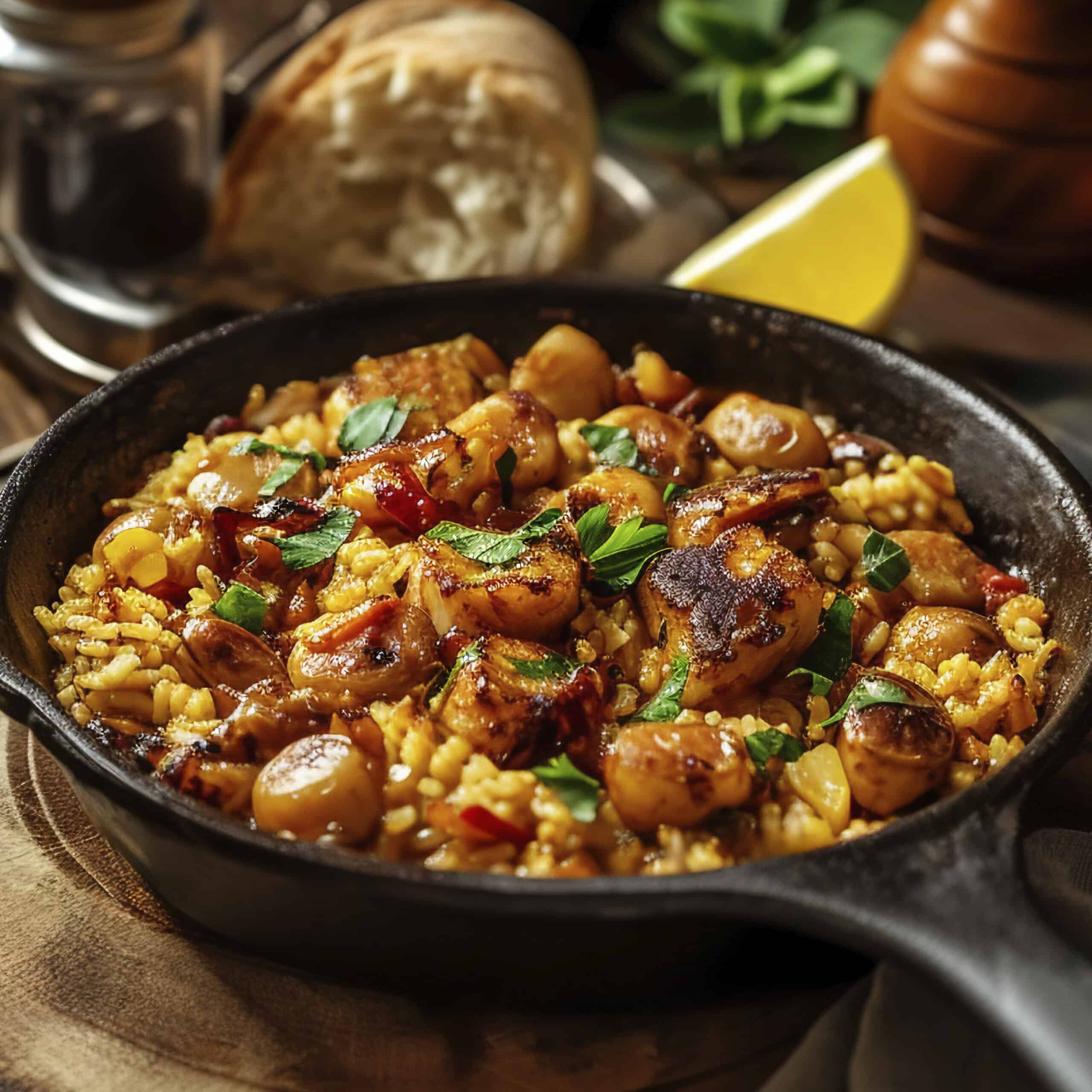 Maintenant que tu connais les bases et les astuces pour réussir ton Jambalaya, il est temps de passer en cuisine ! Suis cette recette pas à pas pour préparer un plat savoureux, riche en épices et en couleurs. Attrape ton tablier et lance-toi dans cette aventure culinaire qui ravira petits et grands !
