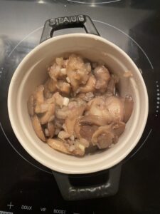 - Dans une casserole, faites revenir les champignons & les échalottes avec le beurre