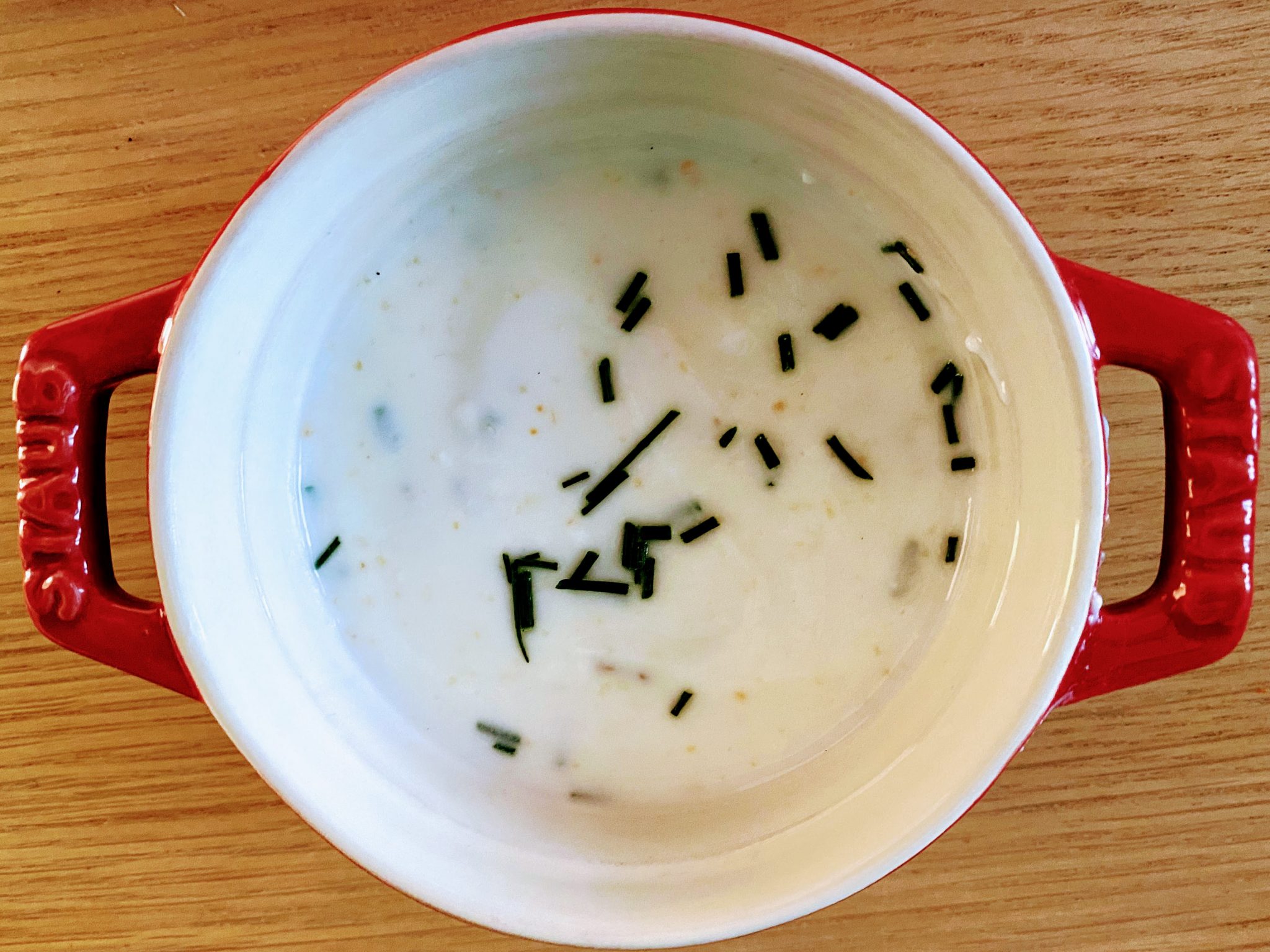 - Mélangez l'ail haché avec le citron, la ciboulette, le yaourt et la fleur de sel1 Yaourt(s) nature, 4 Branches Ciboulette, 1 pincée Fleur de sel